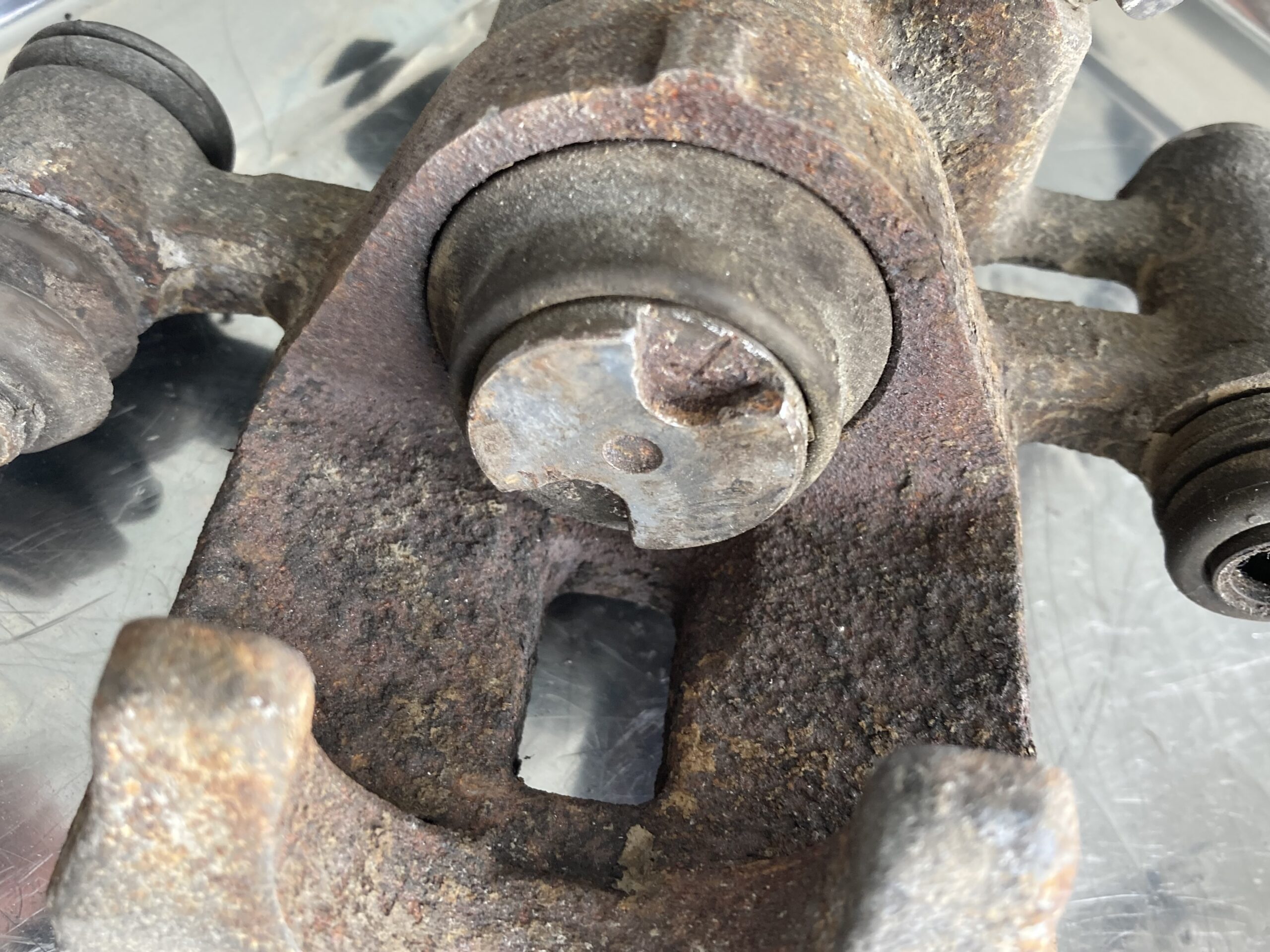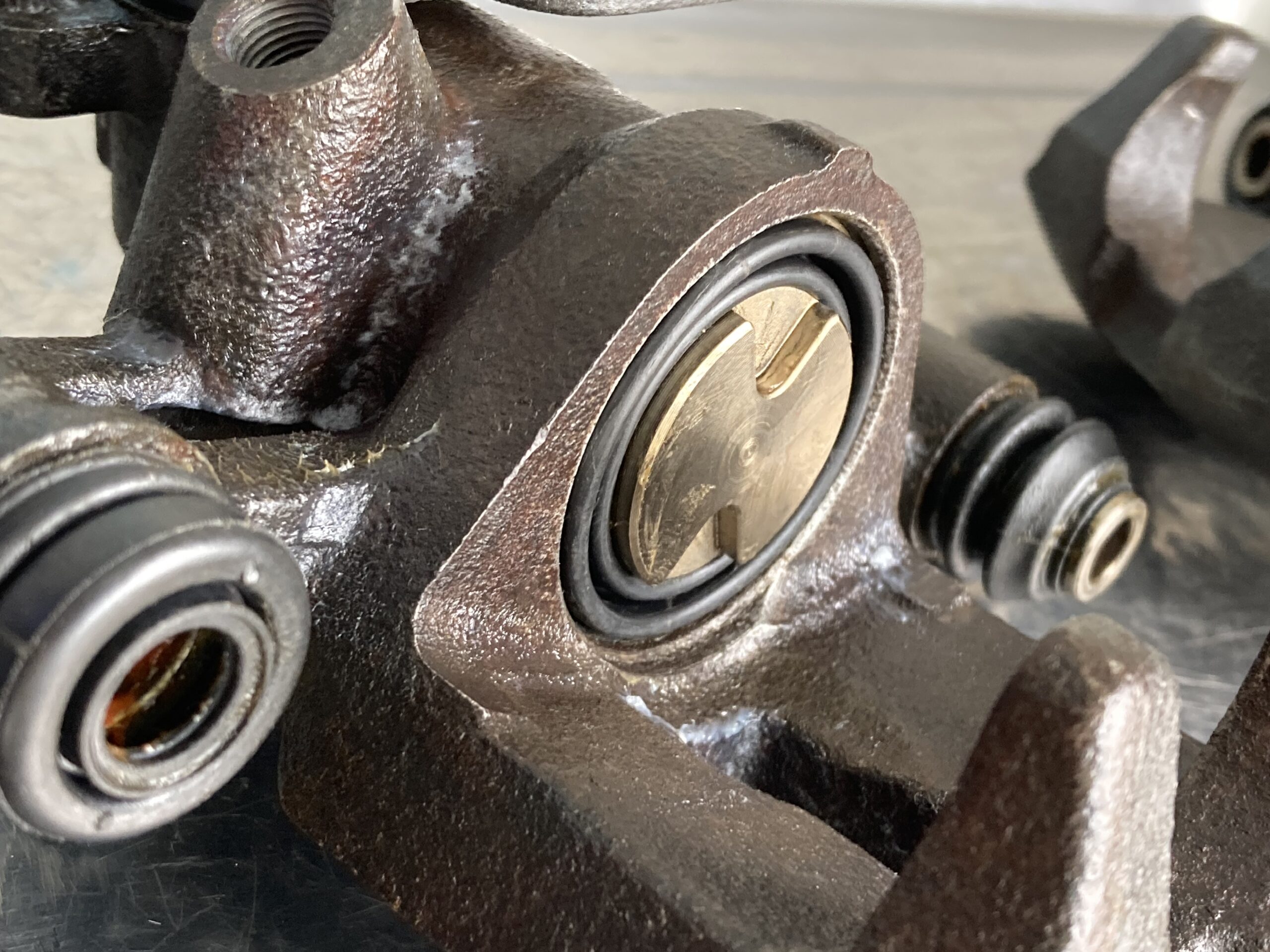稀に、固着によるキャリパー内壁に大きな傷があります。