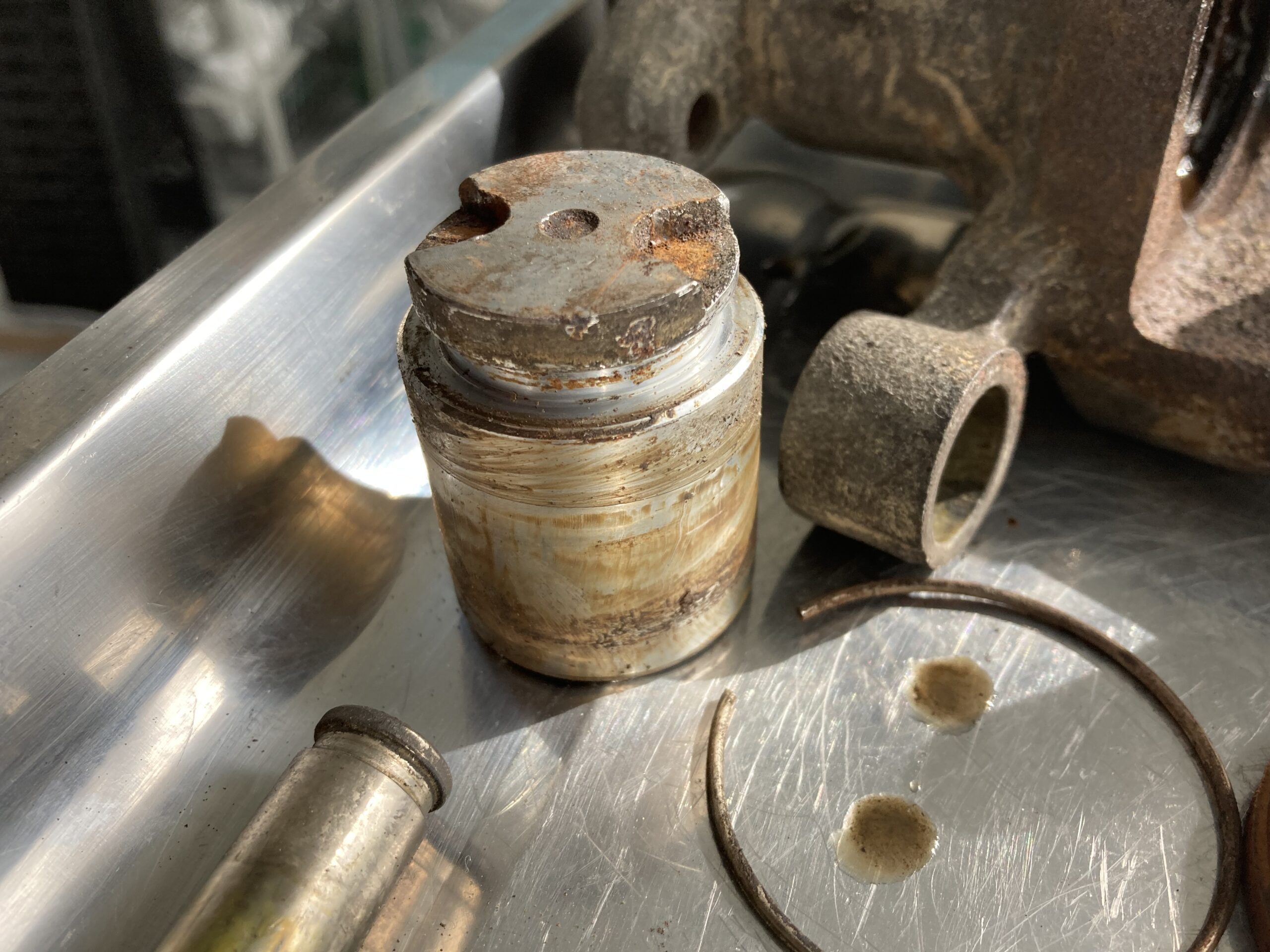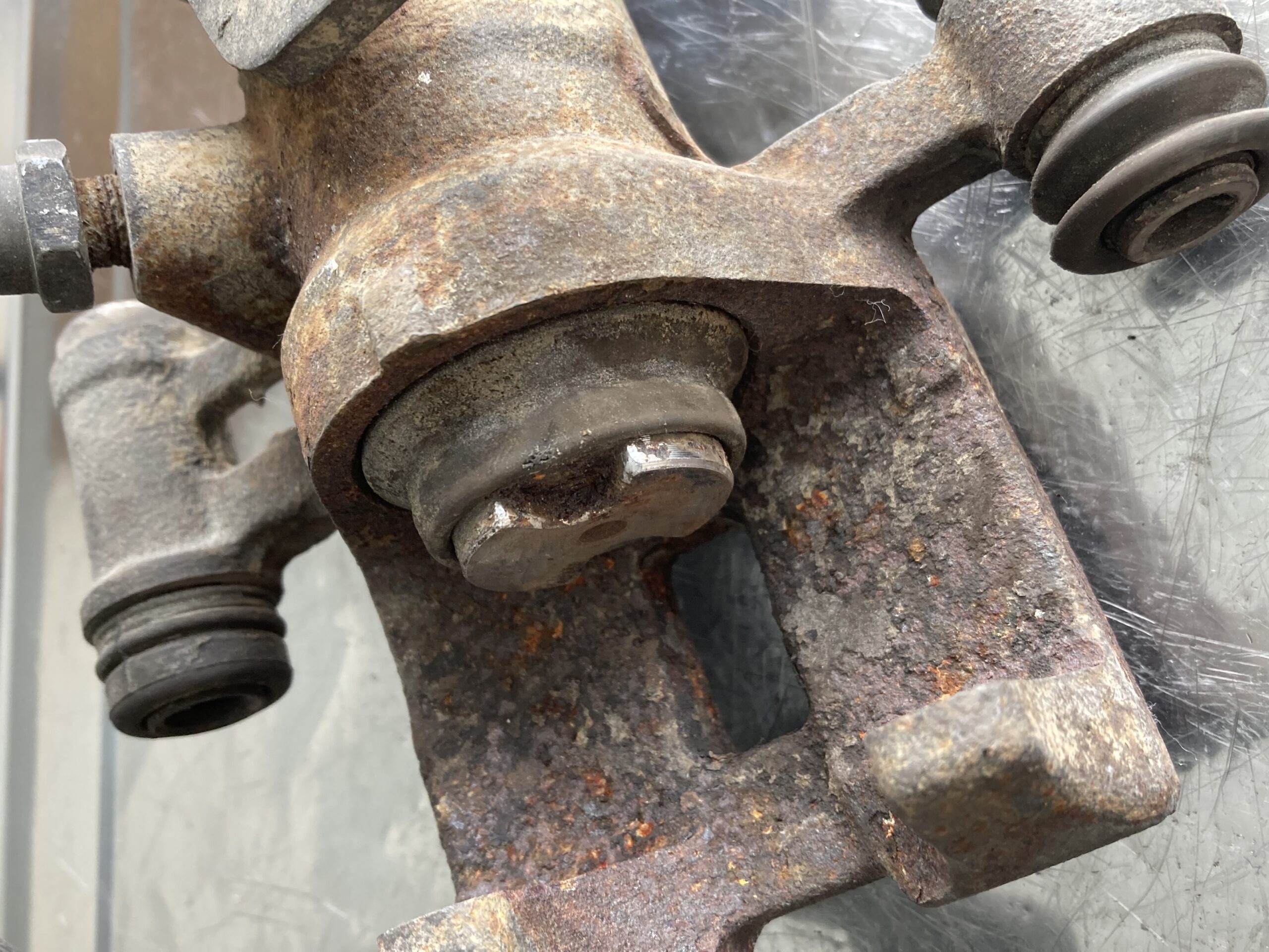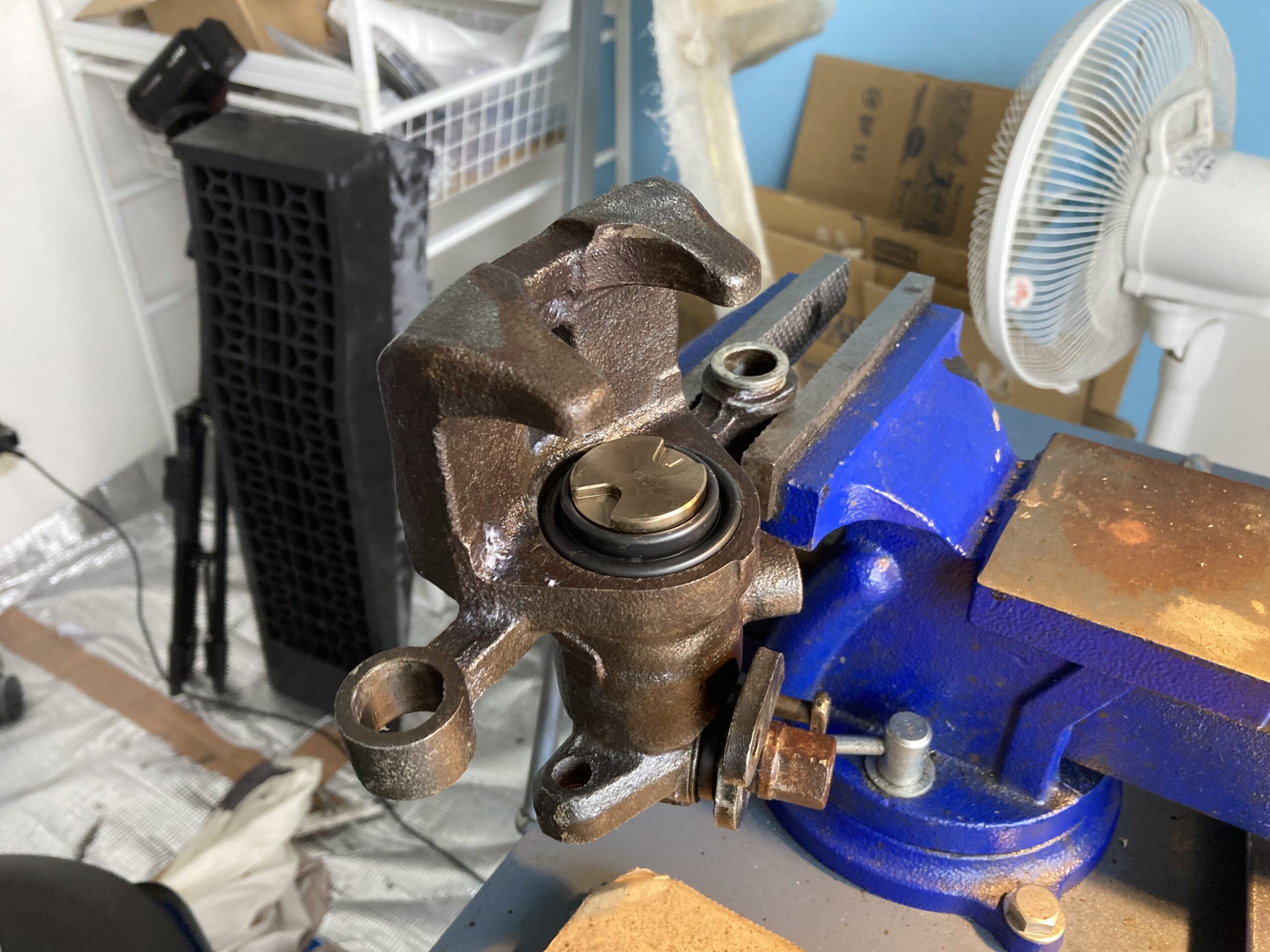 こちらのブレーキもピストンが固着して動かないとのことで入庫。