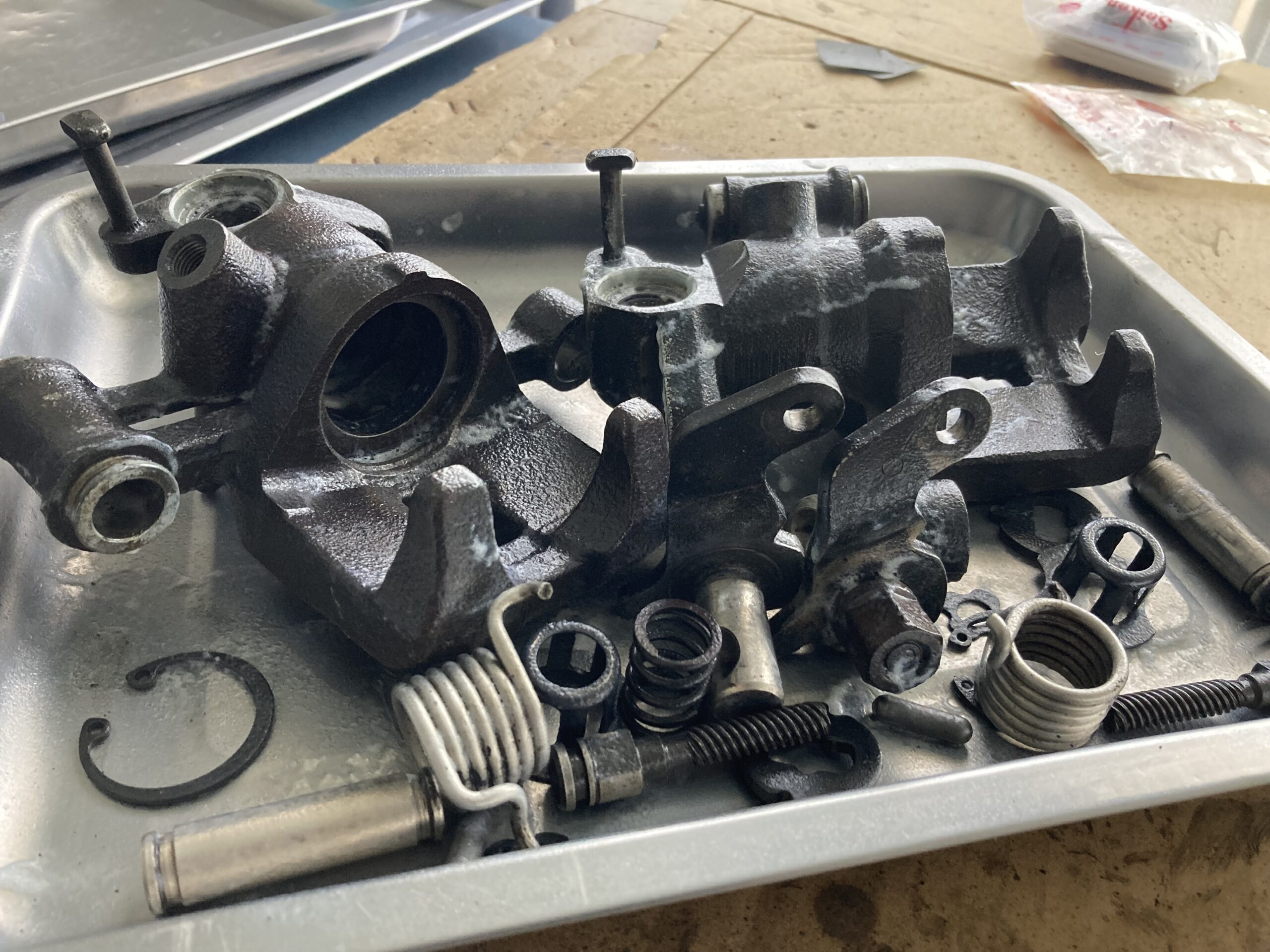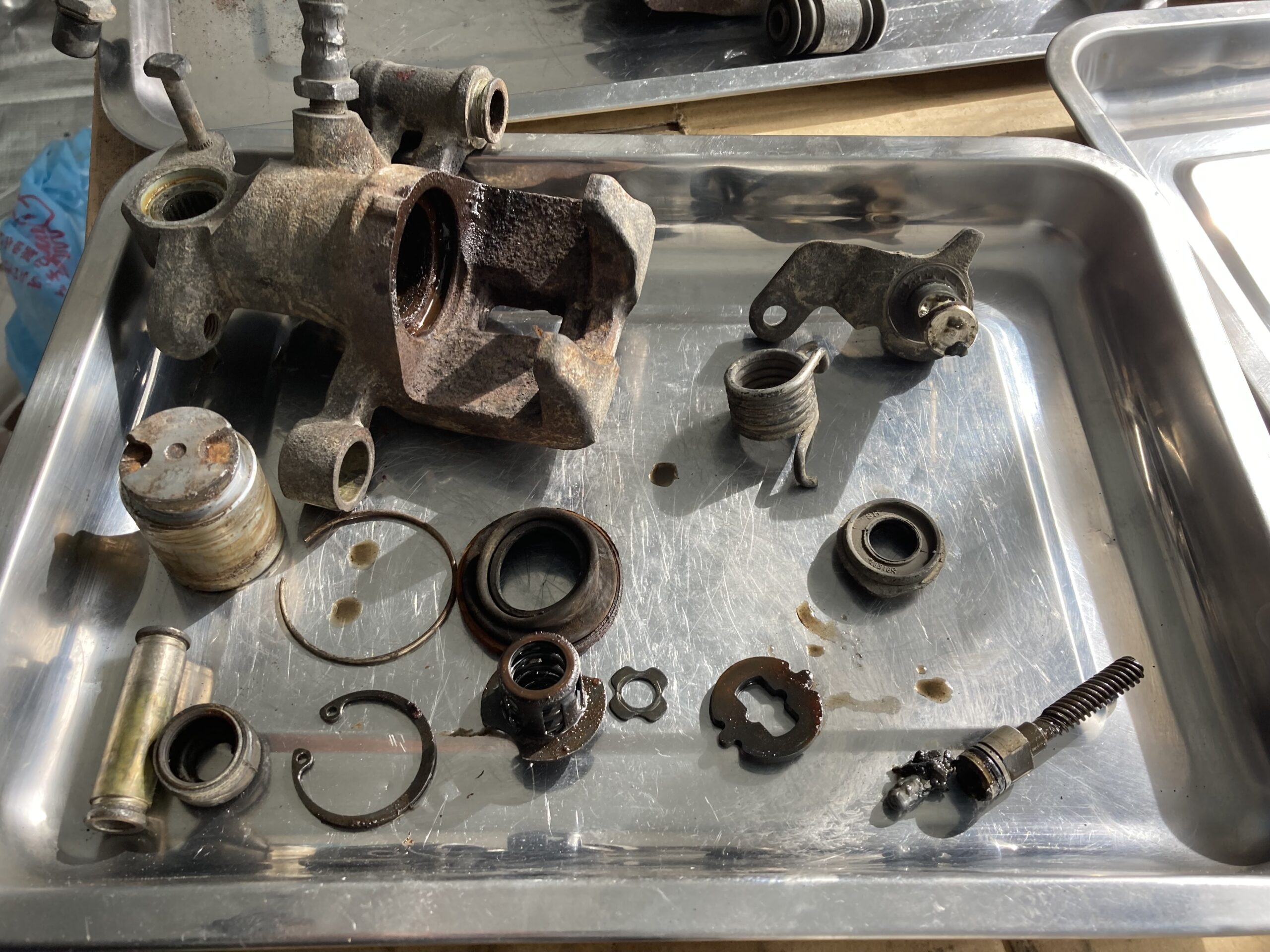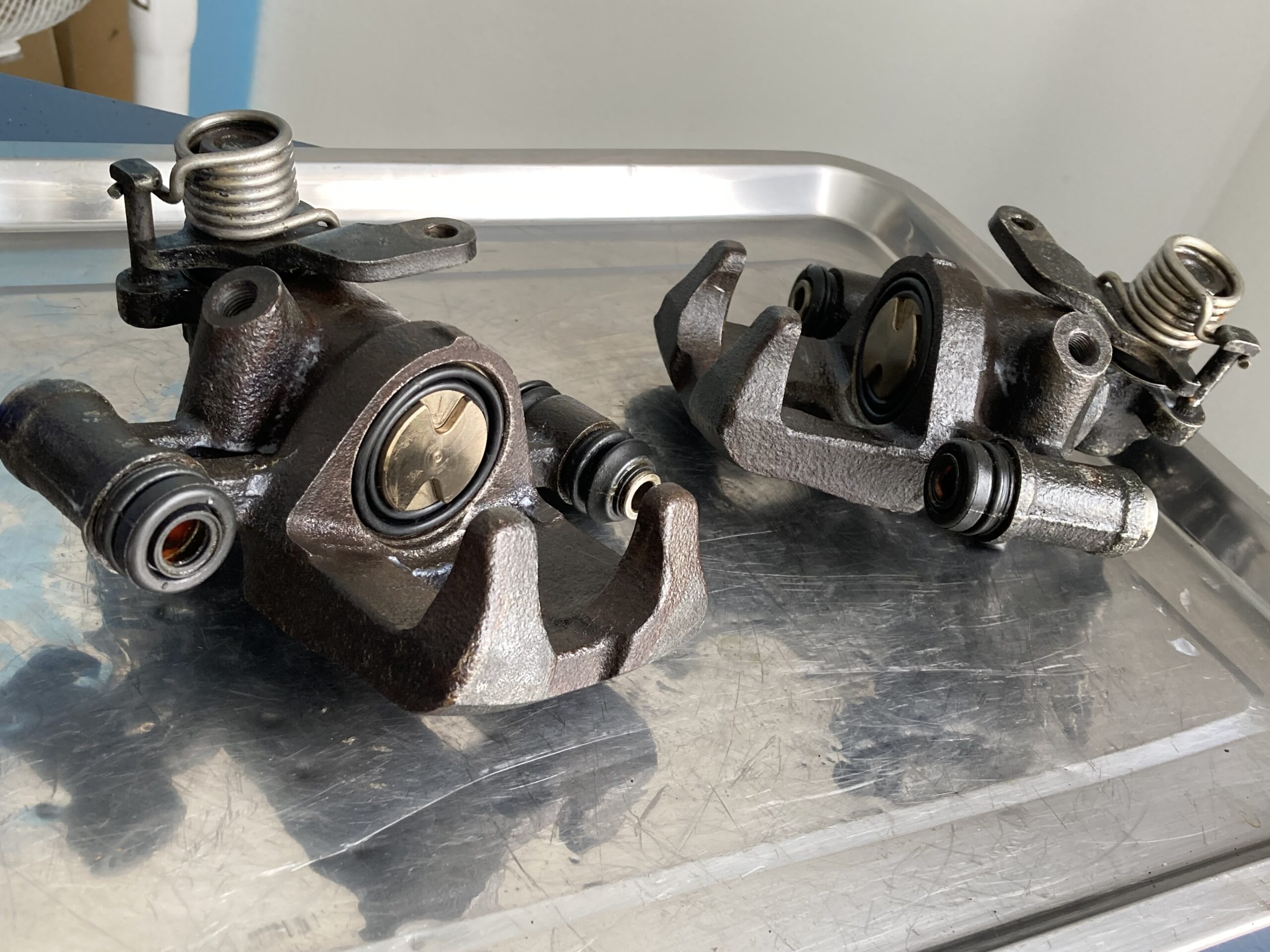 こちらのブレーキもピストンが固着して動かないとのことで入庫。
