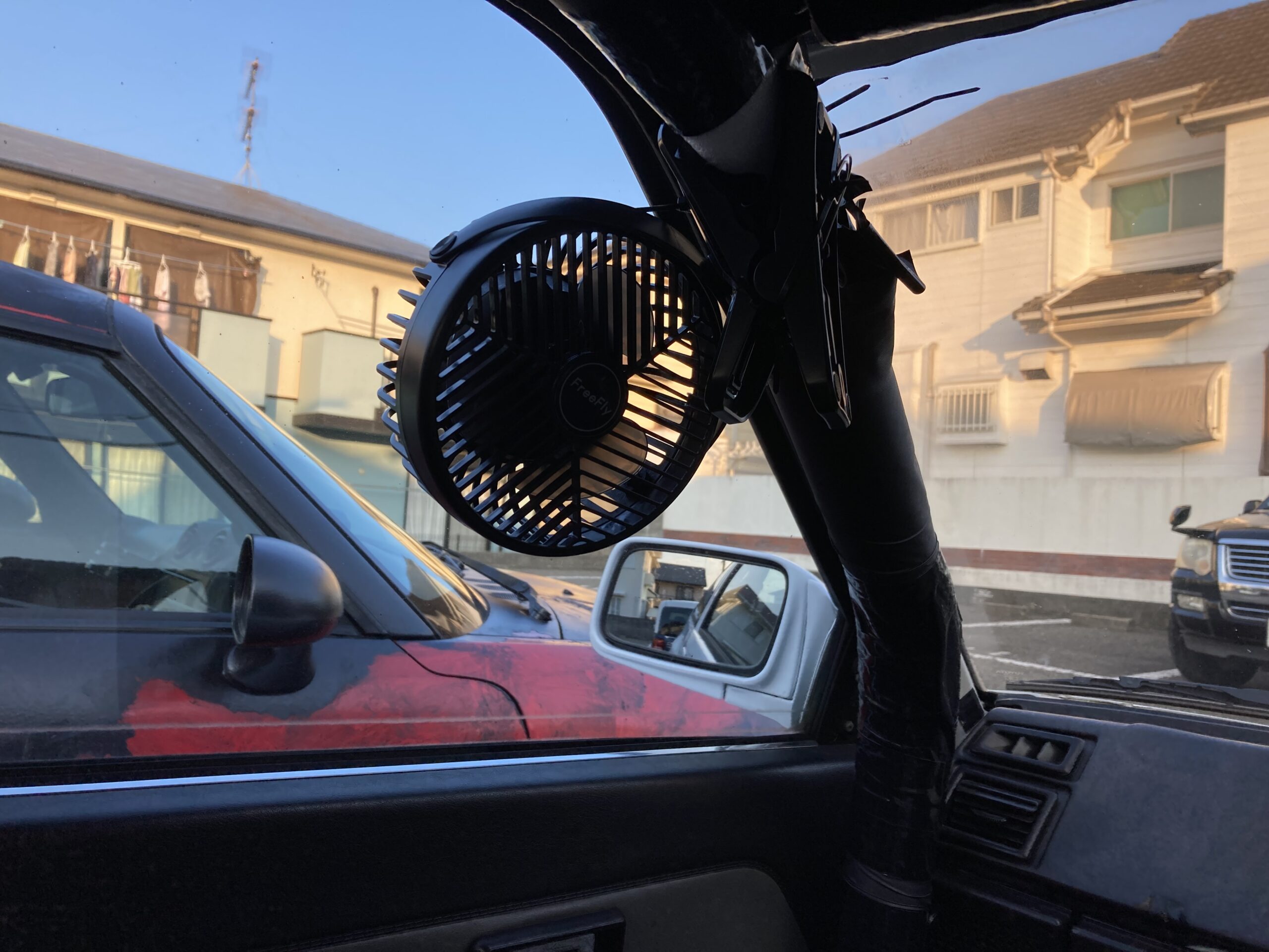 弊社(FreedomLABO)では電動エアコンを製作し取り付けているので、基本的に扇風機は必要ありませんが、開発で脱着を頻繁にします。